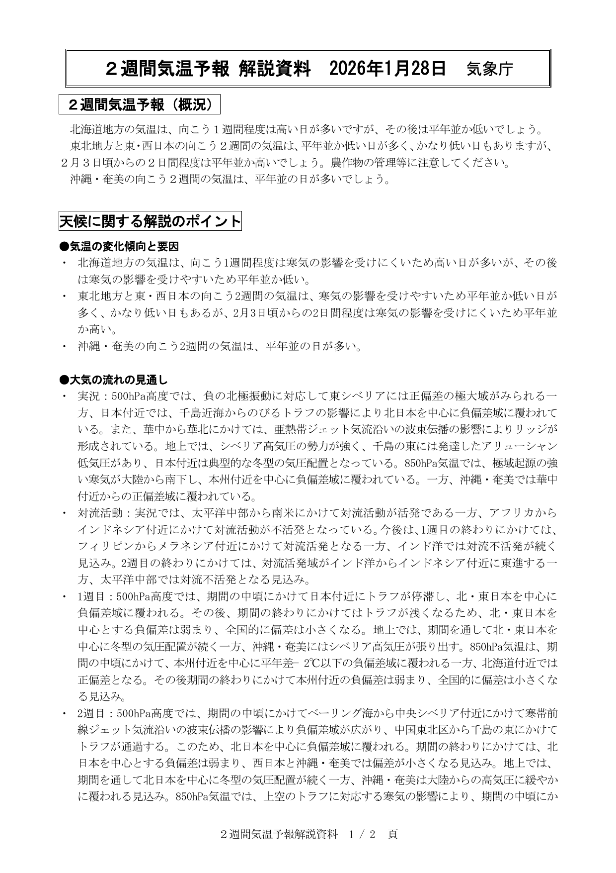 2週間気温予報解説資料