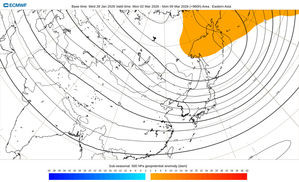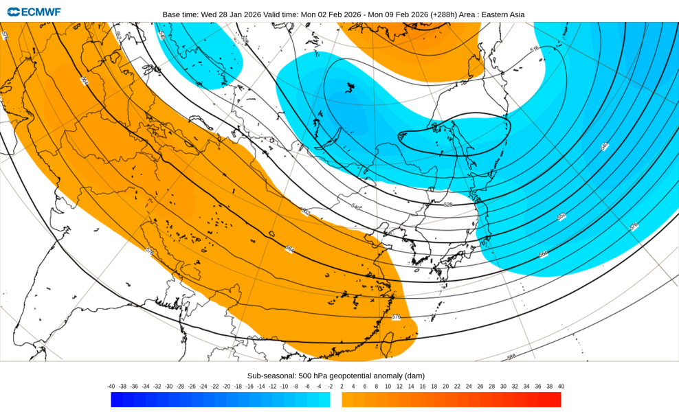 火曜・金曜 AM11:00更新 ECMWF(欧州中期予報センター)から取得した6週間予報画像を公開しています。