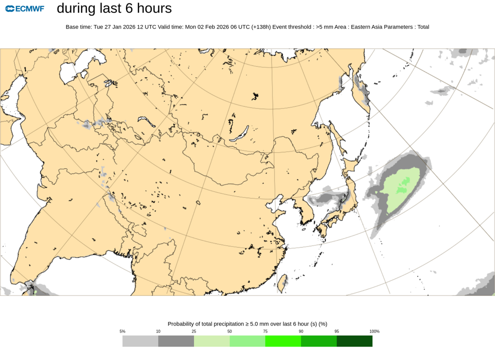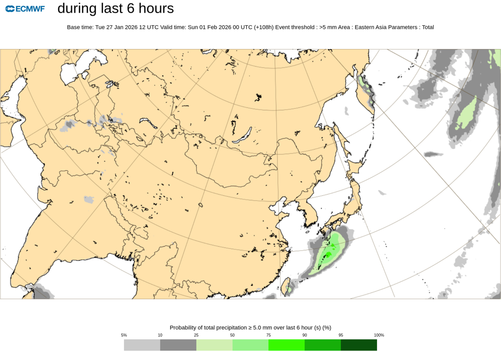 ECMWF ens >1mm/6h 降水確率